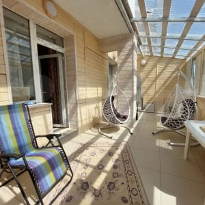 ✅Большая светлая веранда - дополняет удобства данной студии ! На ней стоят качели и стол, где можно так же провести время! Так же у входа в веранду - мангальная зона, где вы можете пожарить мясо