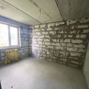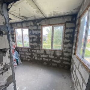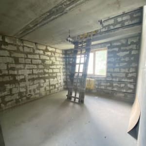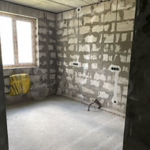 Межкомнатные кирпичные перегородки оштукатурены, полы выровнены.