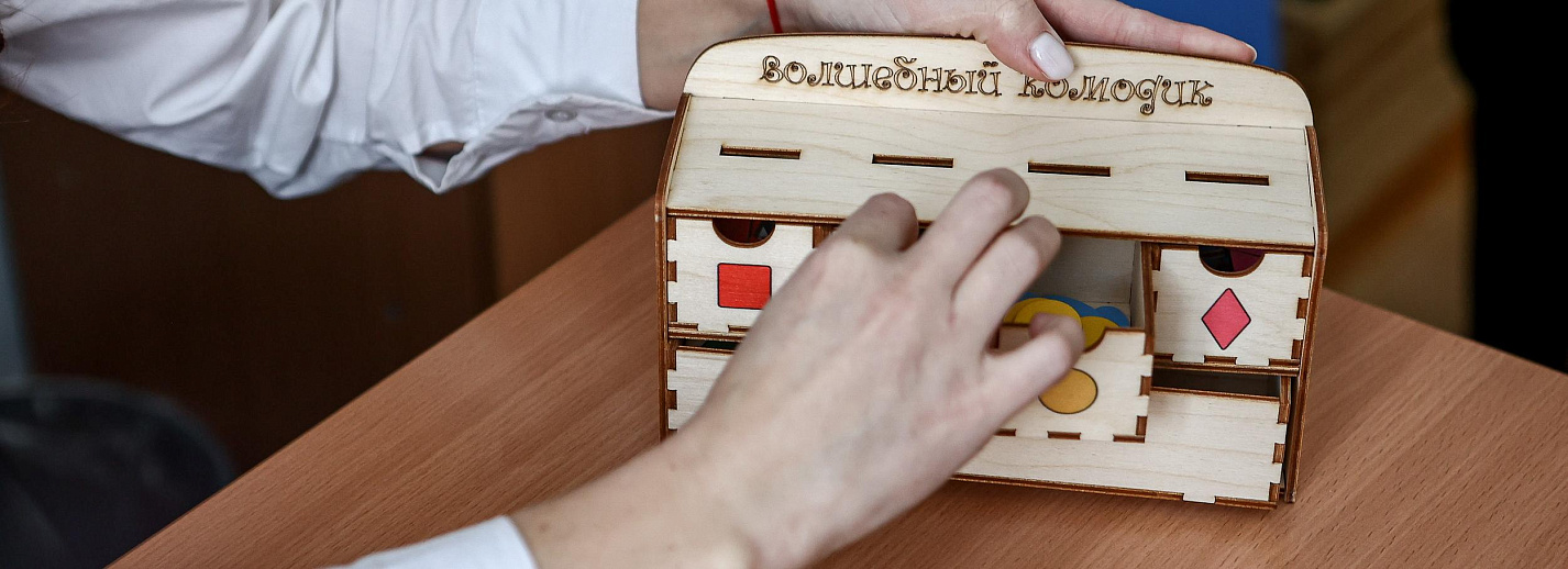 Фото: Ростислав Нетисов, nsknews.infoНоу-хау для занятий демонстрирует учитель-логопед Марина Сенкевич. Всё оборудование по проекту «Доброшкола» педагоги тщательно подбирали сами по своим задачам. Например, «Сундучок логопеда» позволяет брать материалы разных уровней сложности в зависимости от возможностей ребёнка и выстраивать коррекционный маршрут для каждого ученика.