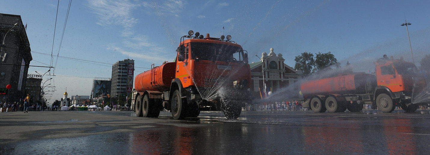 Увлажняют, метут, поливают: как борются с пылью в Новосибирске в жару